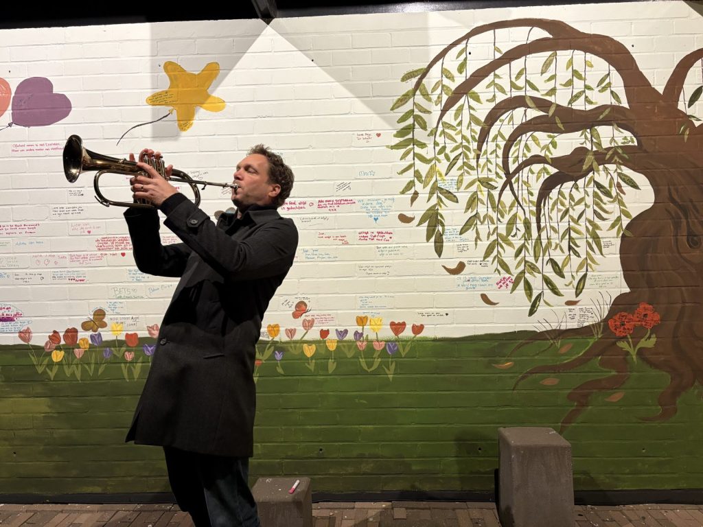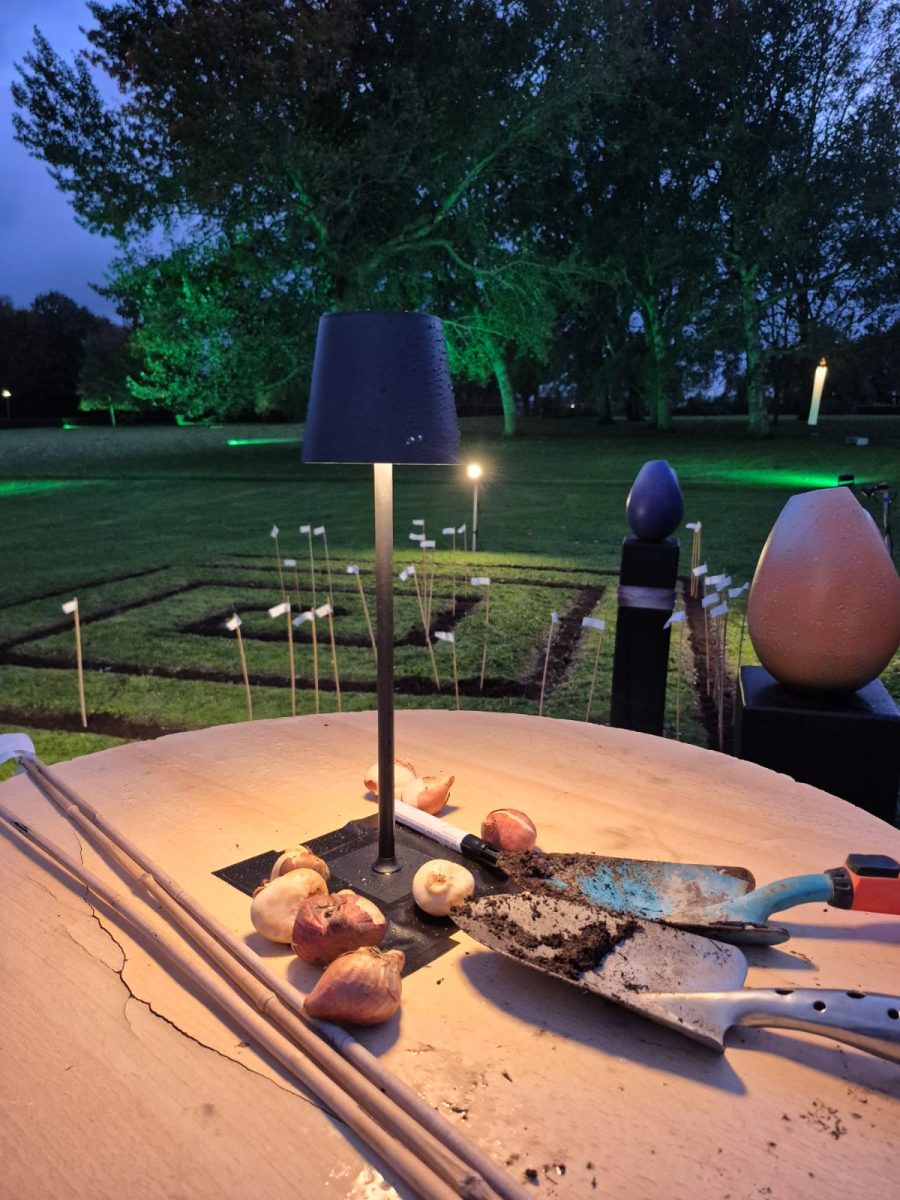 Een bijzonder onderdeel van de avond was de muurschildering, gemaakt door medewerkster Ruby van der Kuil. Bezoekers konden hier een naam of boodschap achterlaten op de buitenmuur van de ruimte voor belangstellenden. Ook buiten was er gelegenheid om tulpenbolletjes te planten, vergezeld van een vlaggetje met de naam van degene die gemist wordt. De bolletjes komen in het voorjaar tot bloei, terwijl de vlaggetjes tot die tijd blijven staan – een tastbare herinnering aan wie we missen.